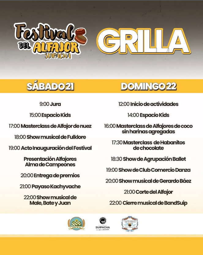 Descripción: Charlas técnicas, muestra agroindustrial, patio de comidas, artesanías, emprendimientos y entretenimiento para las infancias. Espectáculos: sábado, a las 17:30, presentación de Frecuencia Fe, Luciano Leguizamón y Peña Folklórica Tierra Gaucha; domingo, a las 16:00, Maria Barrirero, el Re-Junte y Los Diamantes. Cierre con el Gordo Luis. Bono contribución mayores de 12 años: sábado, $2000 y domingo, $3000. Organiza la Comisión Permanente de Festejos de Hilario Ascasubi con el acompañamiento de la Municipalidad de Villarino.