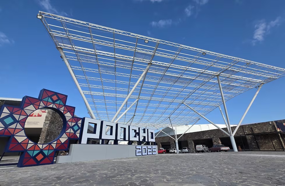 La propuesta arqueográfica que envuelve al predio ferial y sus distintos espacios con la atmósfera de Poncho 2025 fue realizada por Grupo Cactus, fábrica de diseño. En cada espacio, el objetivo fue transformar a la chacana en un símbolo vivo.